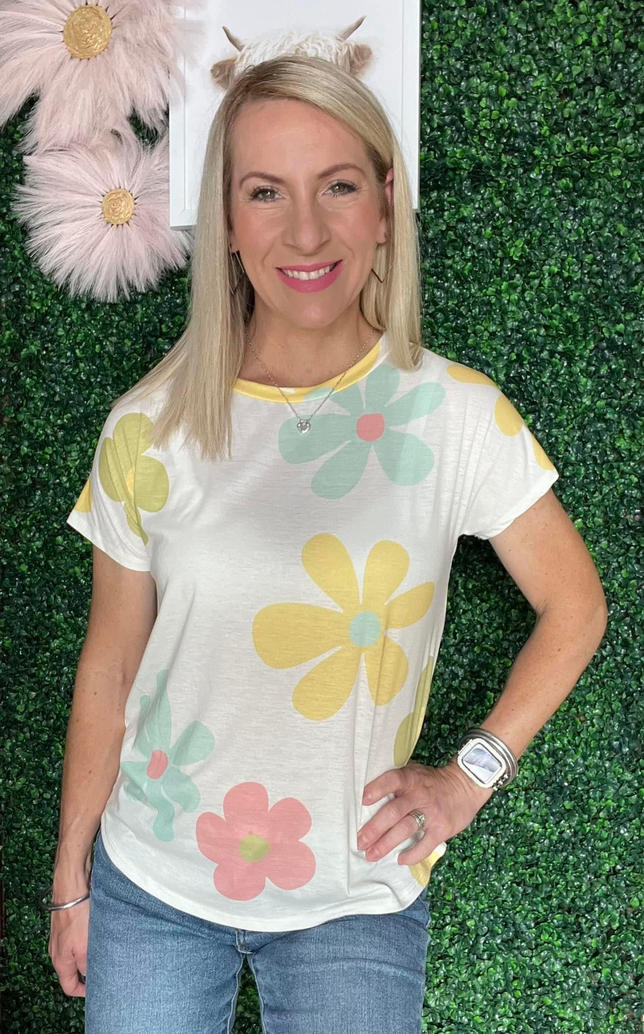 This ivory floral top is crafted with a soft, lightweight material that ensures a comfortable fit. Its design is true to size and features a relaxed fit, making it a perfect addition to your spring wardrobe.